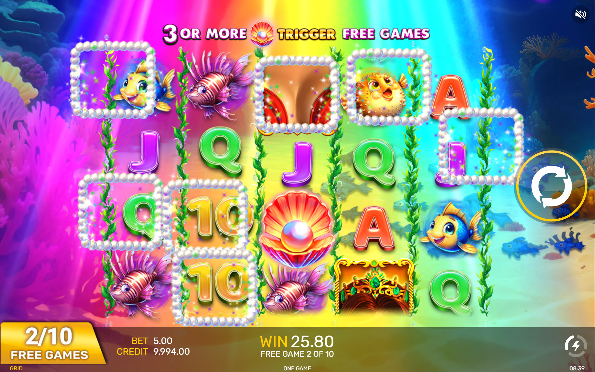 Dive with mermaids to collect the MAGIC PEARLS in this 5×4 slot game with 50 paylines and unique features that play with WILDS. During the base game, CHESTS drop NECKLACES that turn into WILDS after every 10th spin, showering you with winnings! Contrastingly, at the start of FREE GAMES, you can select your preferred number of WILDS by selecting 1 of 3 choices presented to you and your chosen WILDS will swim on the reels with you until the free games conclude. You can also retrigger the free games and get to choose the number of WILDS each time!